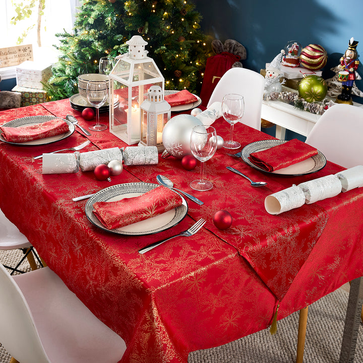 4. Metallic Snowflake Tablecloth (52x70 Inches): Grace your table with our 52x70 inches Metallic Snowflake Tablecloth, available in two captivating colour variations: White/Silver or Cream/Gold. The high-quality fabric drapes beautifully, showcasing the intricate snowflake design and adding a timeless charm to your dining space.