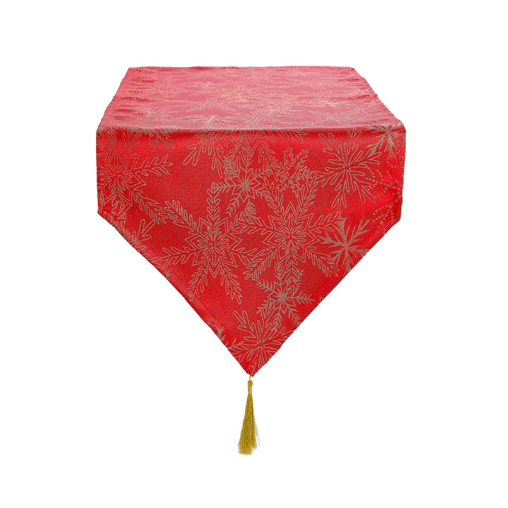 1. Metallic Snowflake Runner (13x96 Inches): Drape your table with our enchanting Metallic Snowflake Runner, measuring 13x96 inches. Its shimmering snowflake pattern creates a captivating focal point for your dining table, making every meal a special occasion.